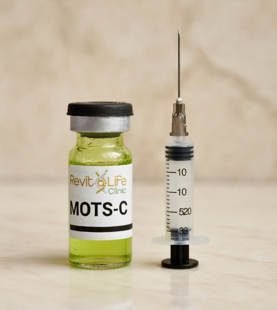 MOTS-C is a mitochondrial signaling peptide that regulates metabolism and stress response. It increases AMPK activation, improves glucose utilization, and enhances fat oxidation. It also helps improve mitochondrial efficiency and insulin sensitivity.